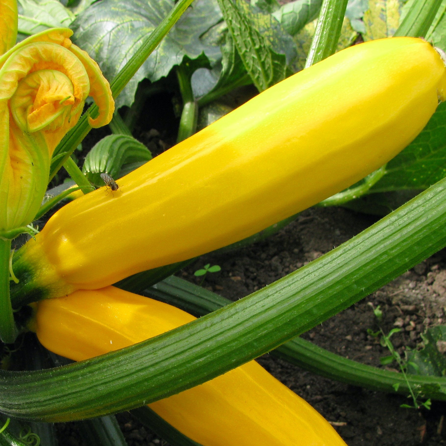 La courgette Gold Rush est une variété précoce très lumineuse, appréciée pour ses fruits d’un jaune doré intense, peau fine et brillante, chair claire et fondante, avec une saveur douce.